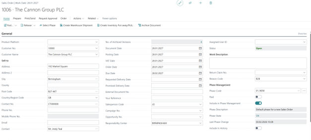 Phase Code – Lookup to Sales Document Phases, filtered by the specific document type.