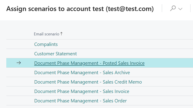 To ensure that e-mail notifications are sent from the correct e-mail address, Document Phase Management uses the standard Business Central E-mail Scenarios feature.