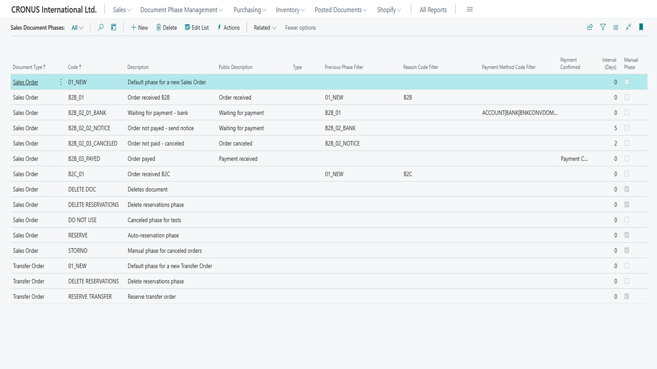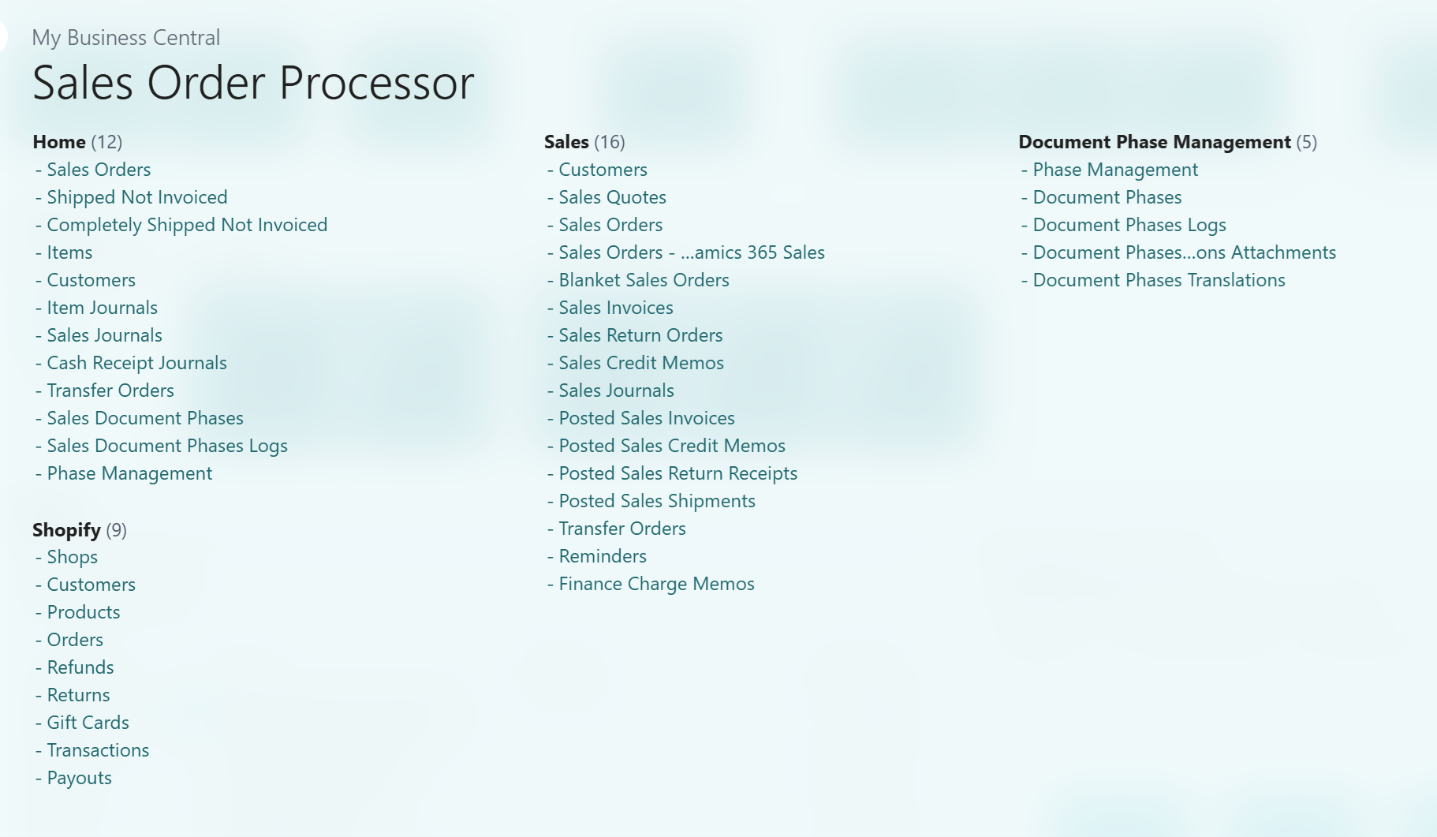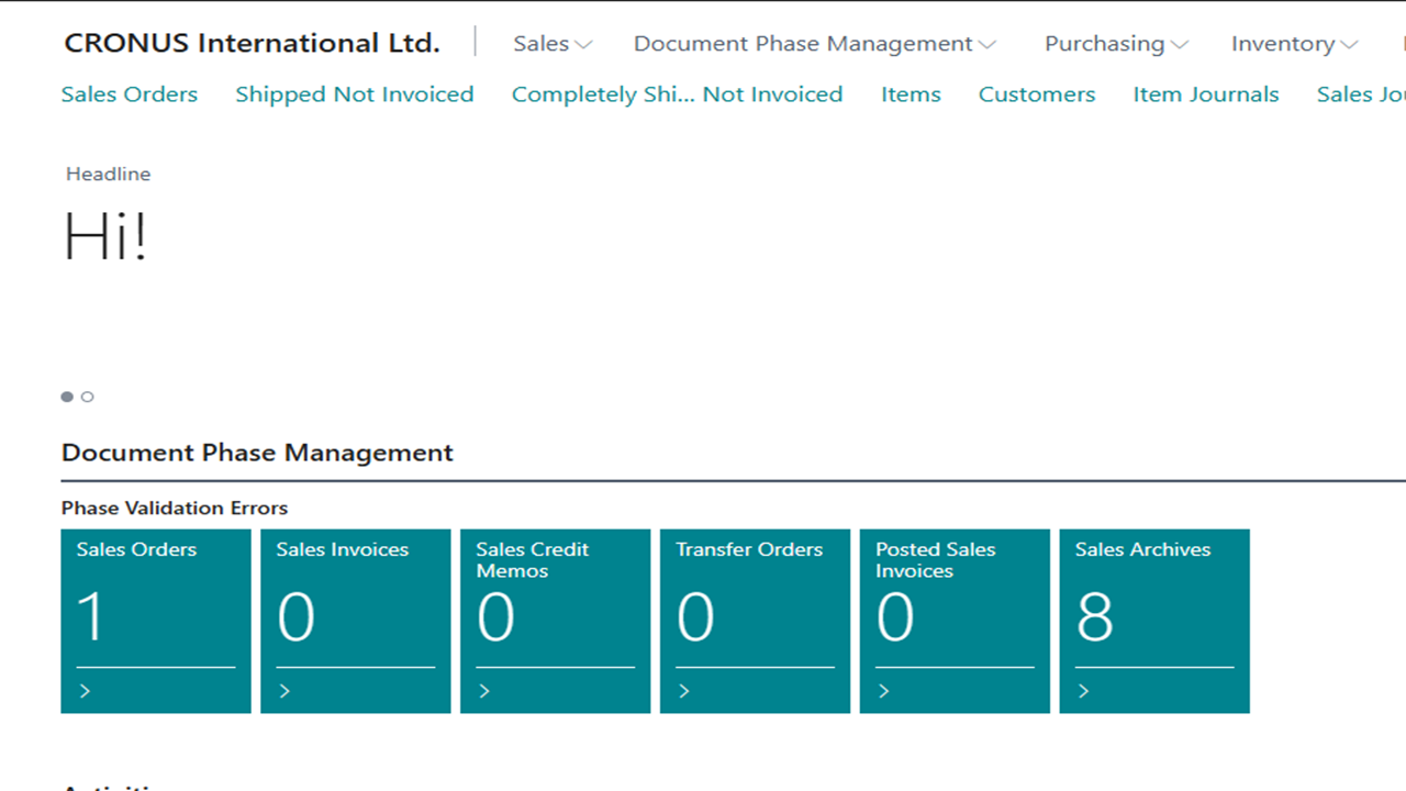 There is no dedicated role center for Document Phase Management. Instead, the Sales Order Processor role has been extended with new tiles and menu options for easier navigation.