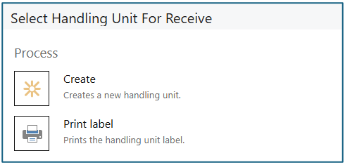 A label can be printed for the handling unit. After selecting/creating the HU, the process continues with entering tracking information, quantities, etc.