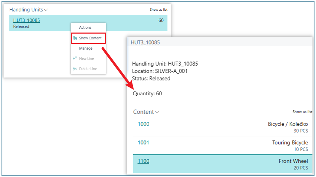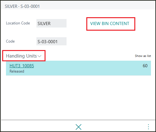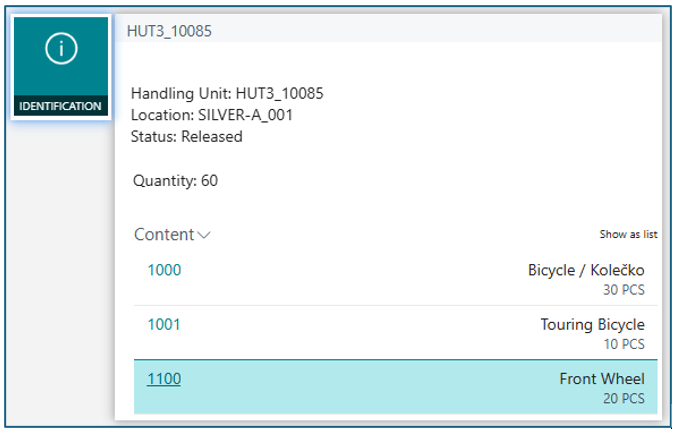 The Bin Contents function now displays both an overview of handling units and a list of items stored in the bin (if at least one HU is stored in the bin, the list of HUs is shown primarily). The user can switch between the displayed data as needed.