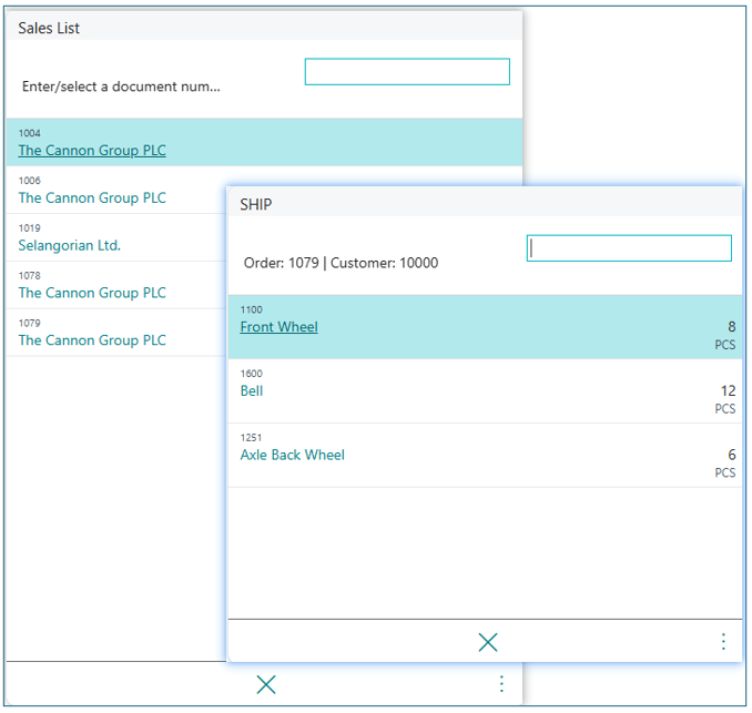 When issuing items tracked by handling unit, for example in the Sales function, the user selects the document they want to process.